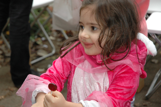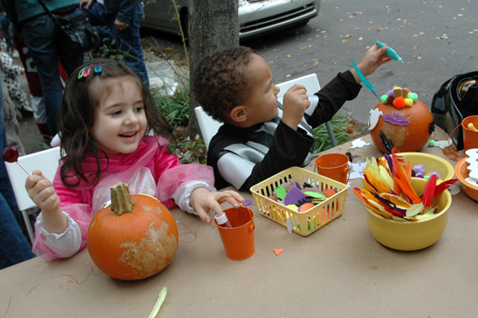 Mia decorates a pumpkin with her friend Cole.