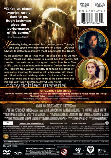| Yesterday, today, tomorrow. Past, present, future. Through time and space, one man embarks on a bold 1000-year odyssey to defeat humankind's most indomitable foe: Death. Hugh Jackman plays that man, devoted to one woman (Rachel Weisz) and determined to protect her from forces that threaten her existence. His quest leads him to a Tree of Life...and to an adventure into eternity. Darren Aronofsky (Pi, Requiem for a Dream) directs, continuing his string of imaginative, involving filmmaking with a tale alive with ideas and filled with astonishing vistas. "Not many films can blow your mind and break your heart at the same time, but this one will" (Drew McWeeny, Ain't It Cool News). |