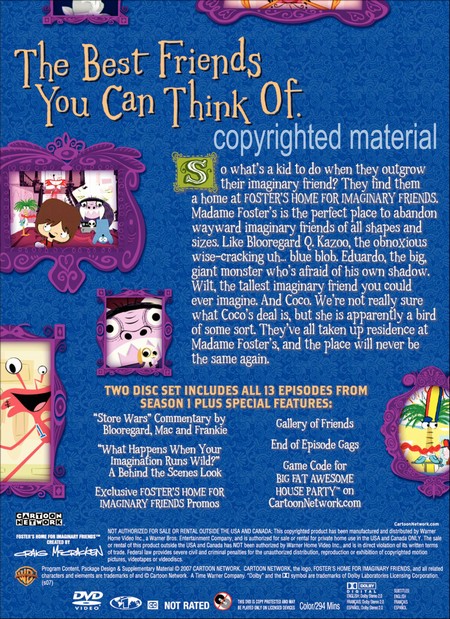 So what's a kid to do when they outgrow their imaginary friend? They find them a home at Foster's Home For Imaginary Friends. Madame Foster's is the perfect place to abandon wayward imaginary friends of all shapes and sizes. Like Blooregard Q. Kazoo, the obnoxious wise-cracking uh... blue blob. Eduardo, the big, giant monster who's afraid of his own shadow. Wilt, the tallest imaginary friend you could ever imagine. And Coco. We're not really sure what Coco's deal is, but she is apparently a bird of some sort. They've all taken up residence at Madame Foster's. and the place will never be the same again. |