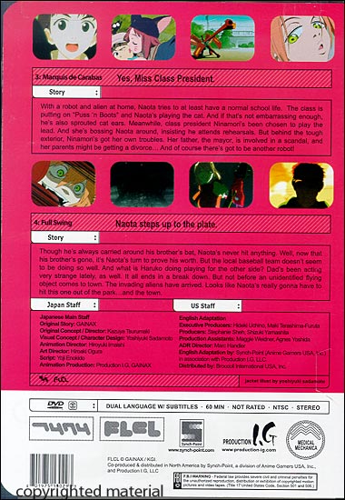 Full Swing Naota Steps Up to the Plate Though he’s always carried around his brother's bat, Naota's never hit anything. Well, now that his brother's gone, it's Naota's turn to prove his worth. But the local baseball team doesn't seem to be doing so well. And what is Haruko doing playing for the other side? Dad's been acting very strange lately, as well. It all ends in a break down. But not before an unidentified flying object comes to town. The invading aliens have arrived. Looks like Naota's really gonna have to hit this one out of the park...and the town. |